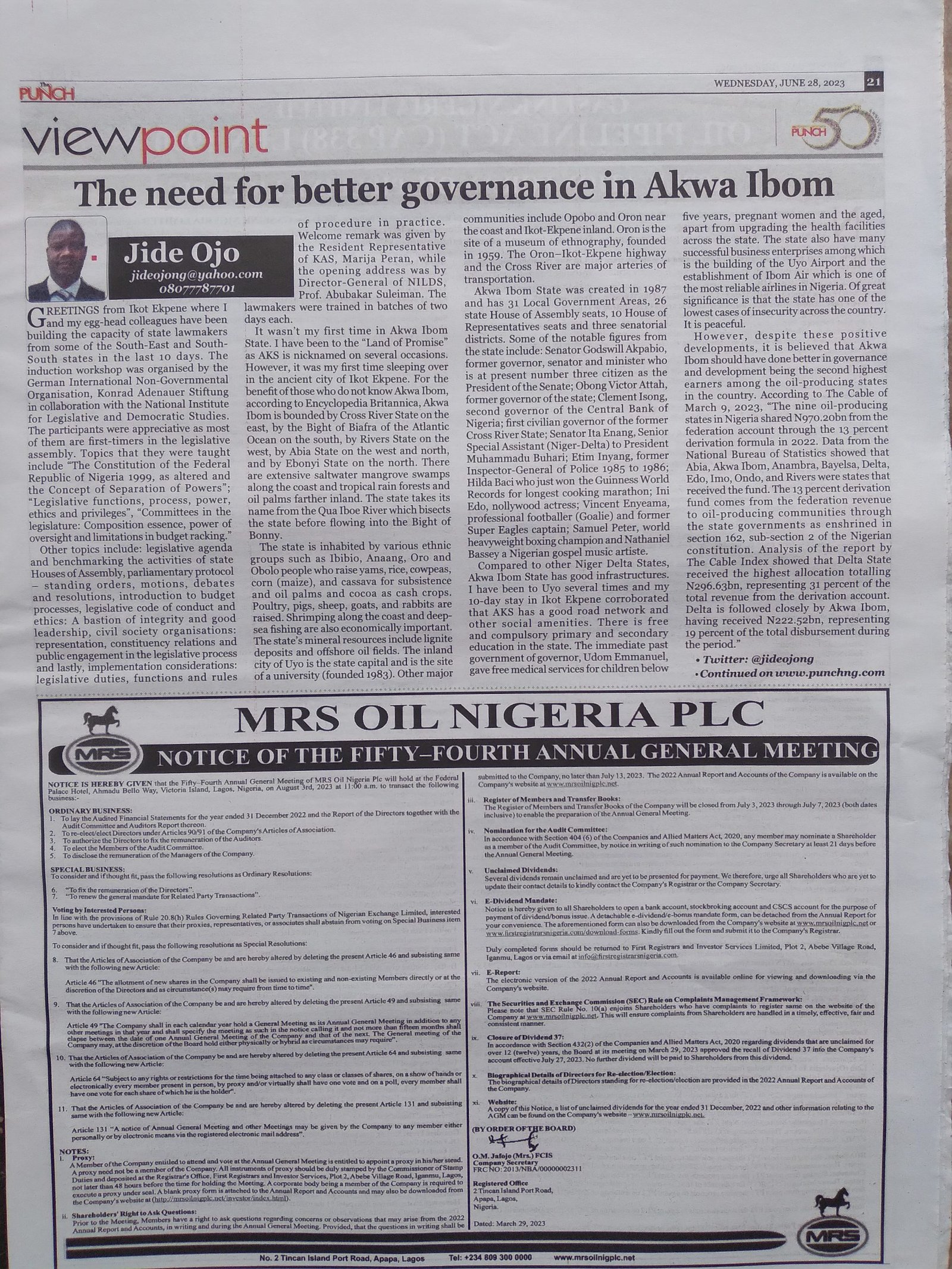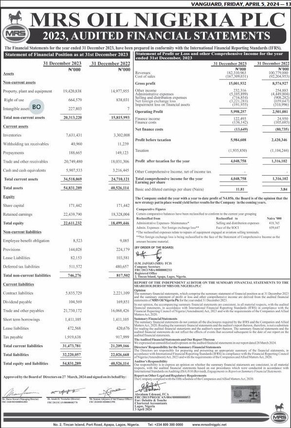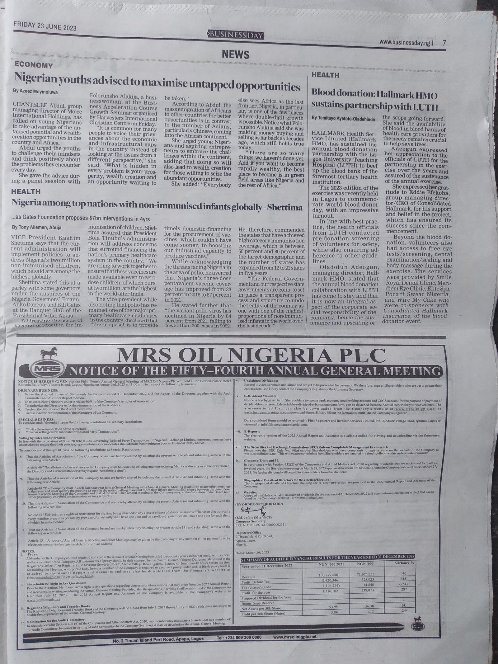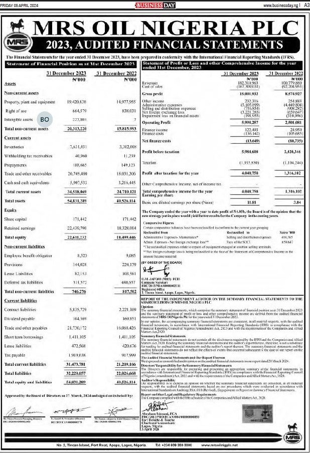The Publication Notice of 2023, Audited Financial Statements – BUSINESS DAY
